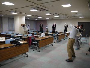 会議の前に全員でリフレッシュ体操を実施