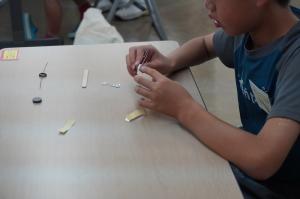 説明を受けた後は、先生の助けを借りながら、クリップモーターを作りました。